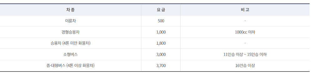 주차시설의 비용은 차종에 따라 다르며, 주차시설 이용료는 주차 시 매표 당일에 지불하시면 됩니다.