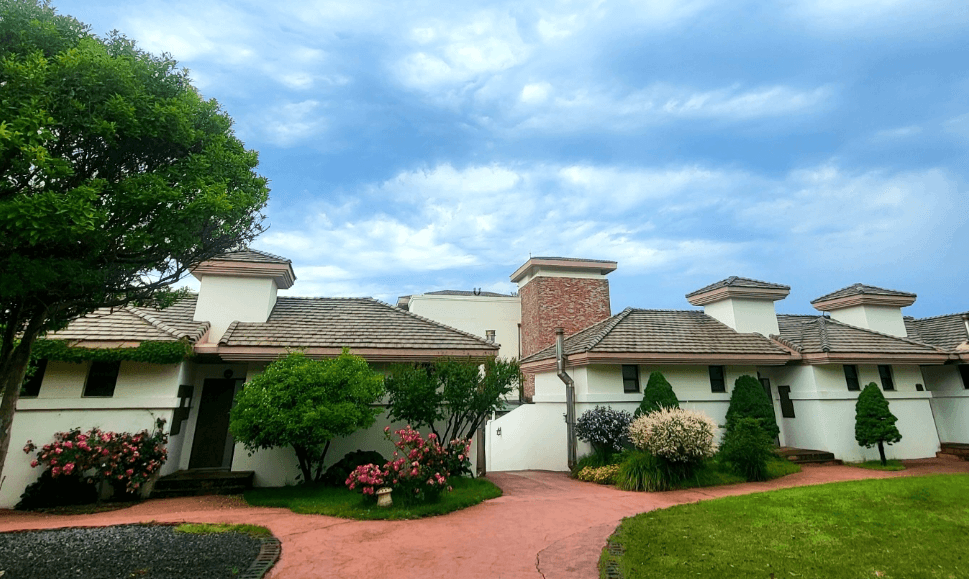 이 숙소는 키즈놀이시설, 대형 사계절 온수풀, 250평의 잔디마당, 100여평 규모의 실내 공간 등을 감성 인테리어로 꾸며 고급 별장 같은 분위기를 자랑합니다.