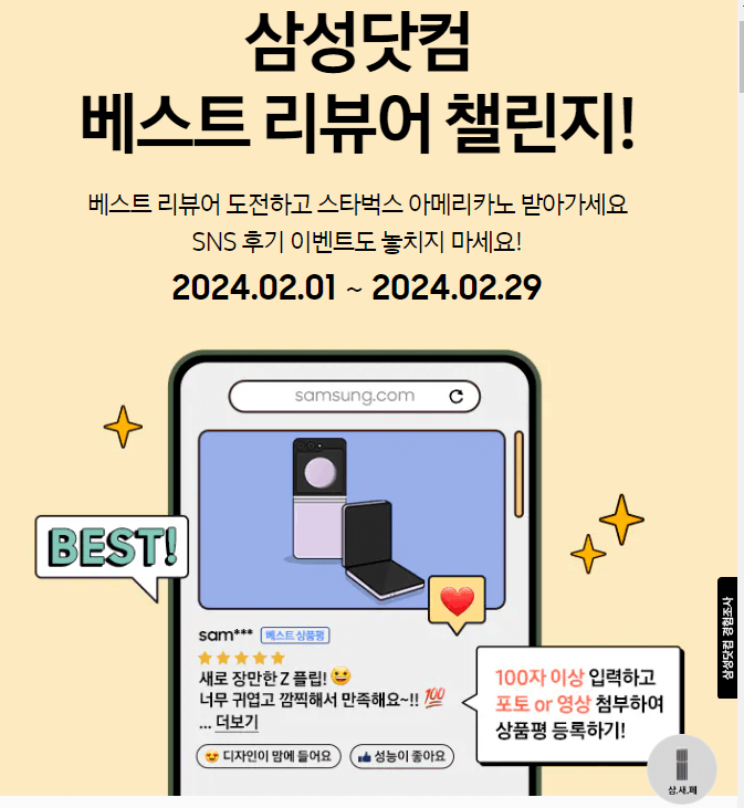 삼성닷컴에서는 베스트 리뷰어 챌린지와 SNS 후기 이벤트를 개최하고 있습니다.