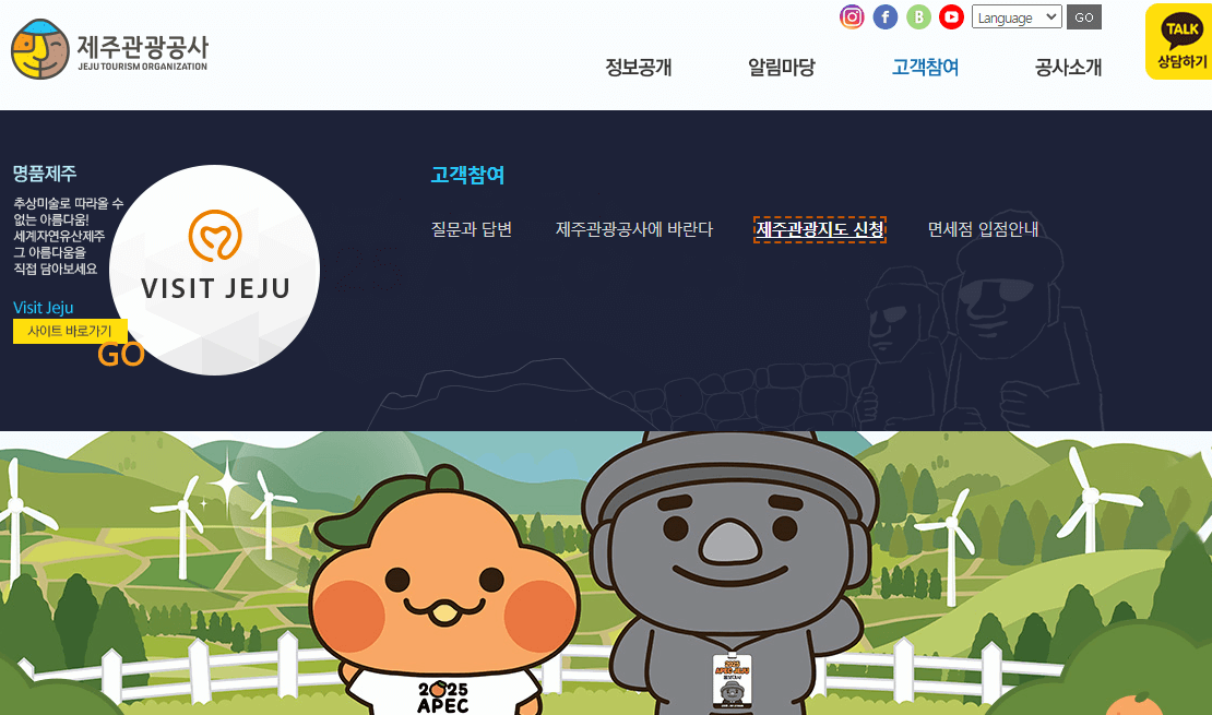 제주관광공사 웹사이트 고객참여 메뉴에는 제주관광지도 신청 메뉴에서 보실 수 있습니다.